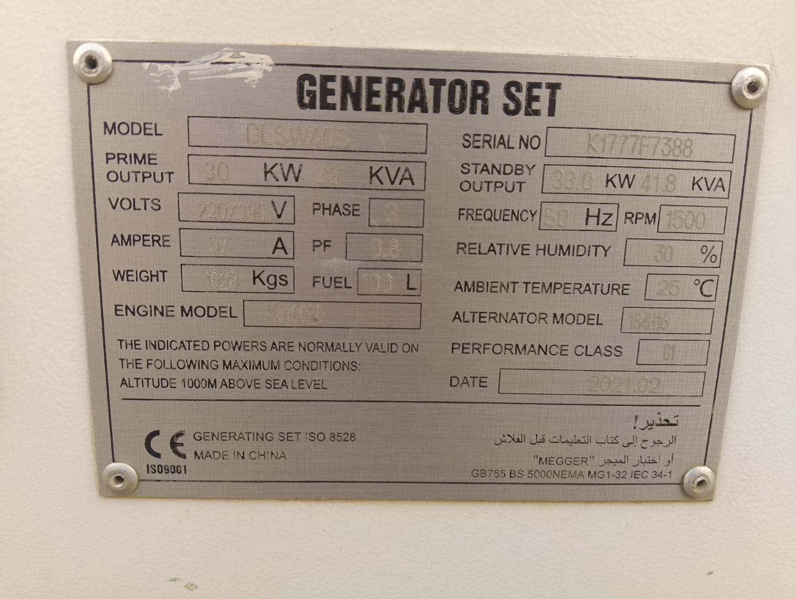 La marca cumple con las normas ISO 9001-2008. Modelo K4100D, cabinado con tablero de transferencia.